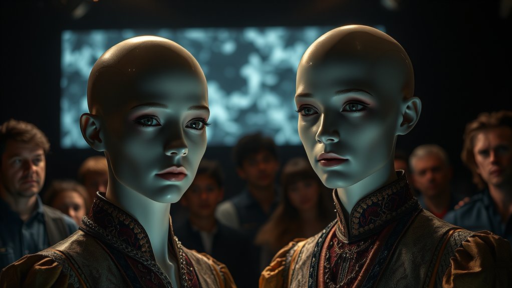 Alongside copyright concerns, identity rights form a core part of the ethical debate. When you employ AI to recreate a famous actor’s likeness, you tread into sensitive territory regarding personal identity and consent. The individual’s right to control how their image is used extends even after their death, and digital recreations can blur these boundaries. If a virtual actor resembles a real person, especially someone who hasn’t consented, it raises questions about exploitation and misrepresentation. Are you respecting the person’s identity rights? Are you ensuring that the portrayal aligns with their wishes or legacy? These considerations become even more critical when you realize that AI can generate images and performances that are indistinguishable from real actors, potentially manipulating audience perceptions or misusing the individual’s identity for commercial gain. Additionally, the ethical implications of using vetted data to train AI actors emphasize the importance of source integrity and responsible AI development.