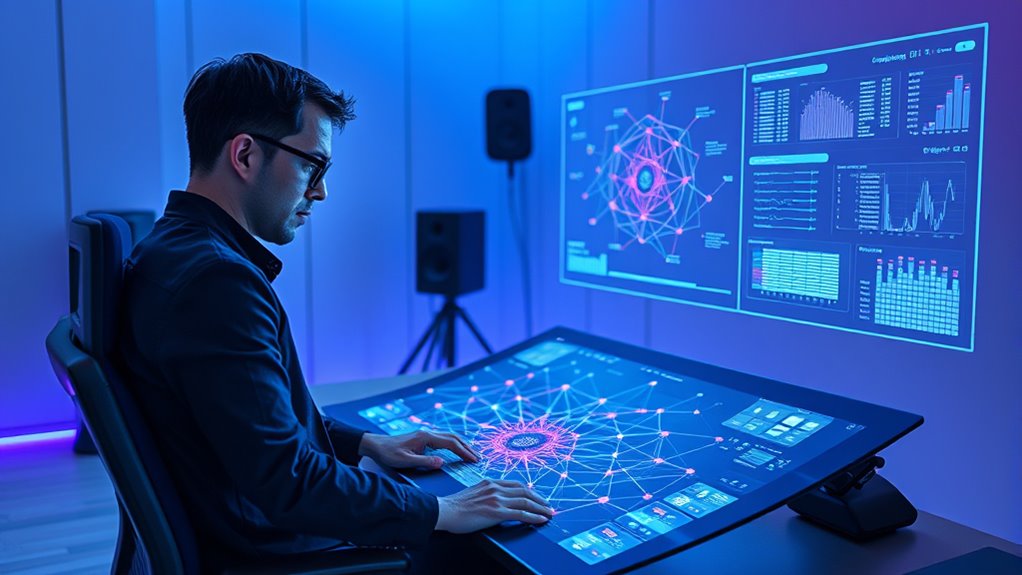 In this environment, licensing models are shifting toward more flexible, digital-first approaches. You might find yourself negotiating licensing terms directly with AI developers or platforms that host generative music tools. These agreements often specify how royalties are split, how rights are assigned, and how future uses are handled. As the technology develops, expect more standardized licensing frameworks to emerge, streamlining the process for creators and rights holders alike. Staying proactive by understanding AI licensing agreements and royalty distribution mechanisms ensures you’re positioned to protect your interests and capitalize on the opportunities generative music offers. Ultimately, maneuvering these new models requires vigilance, adaptability, and a clear grasp of the legal and technological landscape shaping the future of music rights management.
