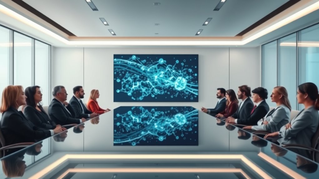 In corporate environments, implementing strong AI ethics and governance is essential for responsible use. You should focus on reducing biases through diverse data and fairness algorithms, while establishing accountability frameworks that clarify roles and promote transparency. Continual monitoring and updates help address new challenges and maintain standards. By fostering trust and staying informed on best practices, you guarantee your AI systems remain fair and ethical. Keep exploring these strategies to build a responsible AI culture within your organization.