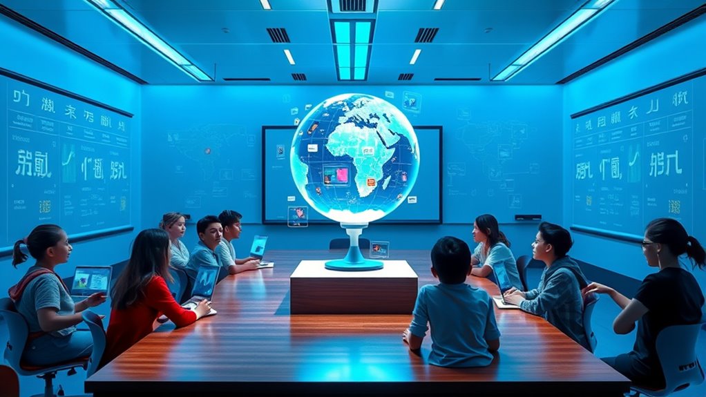 AI is transforming language learning by offering personalized lessons tailored to your pace and style. It analyzes cultural nuances, regional expressions, and social cues for authentic understanding. You can practice pronunciation with instant feedback that replicates native speakers and engage in immersive conversations using virtual assistants. These innovations remove barriers and make learning more accessible and effective. Keep exploring how AI’s new tools can enhance your language skills and cultural knowledge even further.