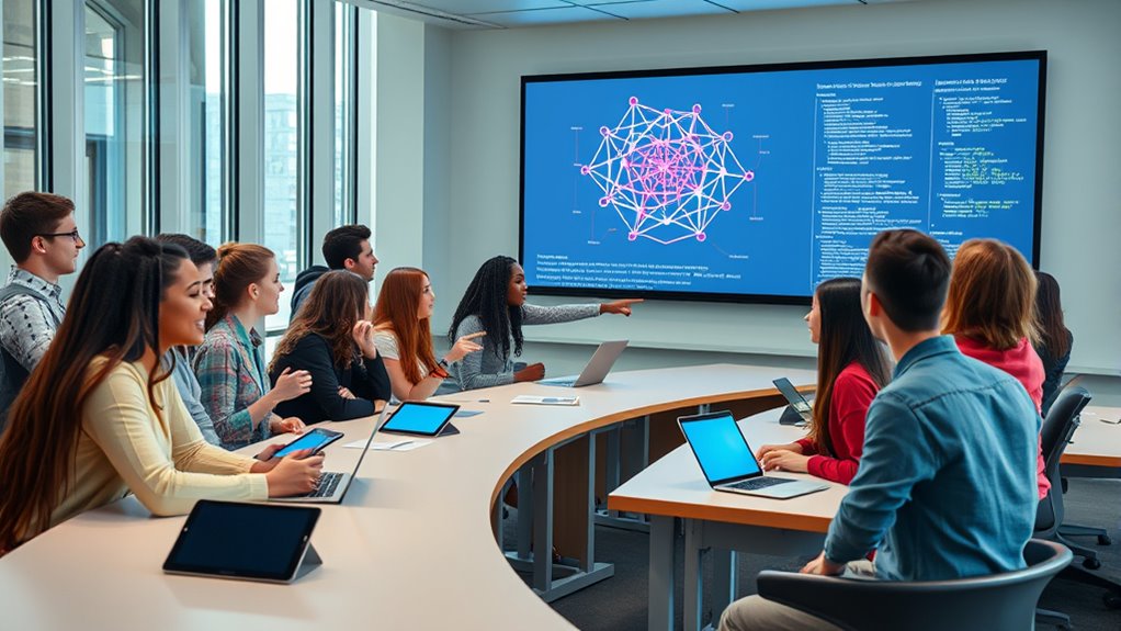 Ethical considerations shape AI literacy education by making you aware of issues like algorithm bias and privacy concerns. You learn to critically evaluate AI systems, understanding how biases can affect outcomes and why protecting user data matters. This awareness encourages responsible use and development of AI, ensuring you’re prepared to navigate and shape an ethical AI future. Emphasizing these topics helps you become a conscientious participant in AI’s evolving landscape.