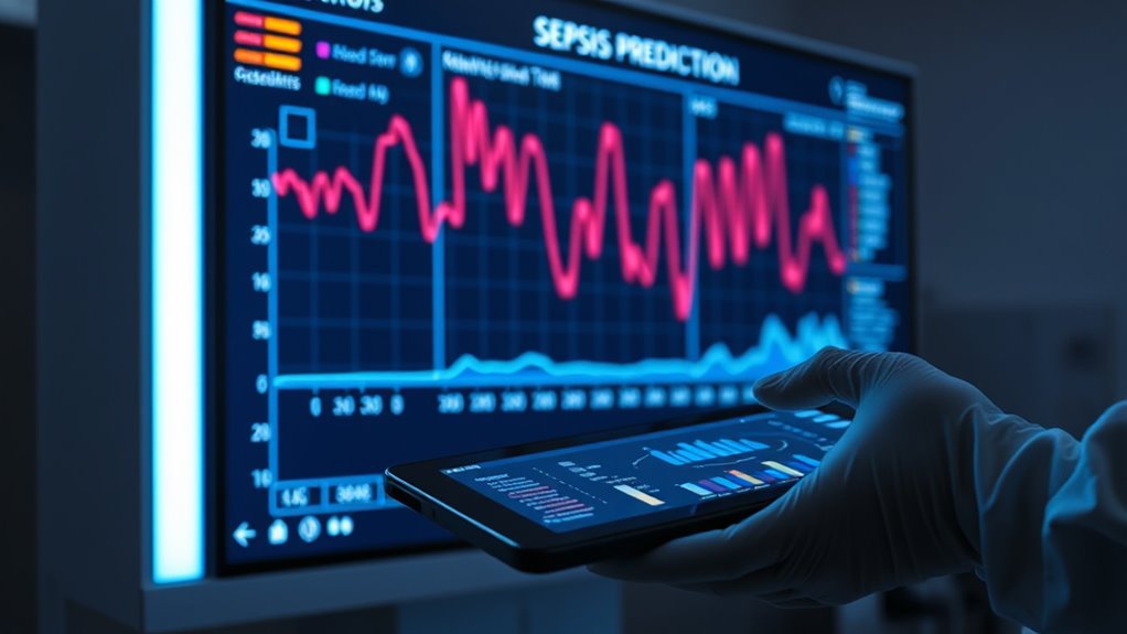 You rely on the system’s prediction outputs, which 85% of providers find helpful, to guide your decisions. You interpret these results by combining them with your clinical judgment, considering patient history and symptoms. Decision thresholds help you determine when to act, balancing sensitivity and specificity. Ultimately, you weigh the system’s alert alongside your experience to guarantee timely, accurate sepsis management.
