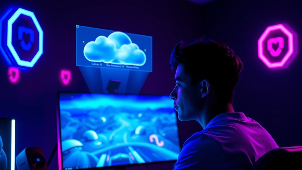 Your data transmission during cloud gaming sessions is generally secure thanks to data encryption and robust network security measures. Encryption protects your information from eavesdroppers, while network security protocols prevent unauthorized access. However, no system is completely foolproof. To stay safe, make certain you’re using secure Wi-Fi networks, keep software updated, and choose reputable cloud gaming services with strong security practices.