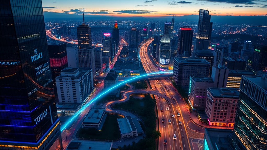 Have you ever wondered how artificial intelligence is transforming the way cities grow and operate? It’s an exciting shift, especially as AI integrates into urban planning to create smarter, more efficient environments. One of the most noticeable changes is in autonomous transportation. Self-driving vehicles are no longer just a futuristic concept; they’re becoming a practical part of city life. With AI-powered autonomous transportation systems, traffic congestion can be reduced, accidents minimized, and commute times shortened. These vehicles use sophisticated sensors and real-time data to navigate complex urban landscapes safely, adapting instantly to changes like road closures or unexpected obstacles. This not only improves mobility but also helps lower carbon emissions, making cities more sustainable. As you move around a city with autonomous transportation, you might notice how seamlessly these vehicles operate, coordinating with traffic signals and other vehicles through AI algorithms. This connectivity fosters a smoother flow of traffic and less congestion, ultimately enhancing your daily experience. Additionally, urban data analytics is increasingly being employed to optimize city functions, making urban environments more responsive and efficient.