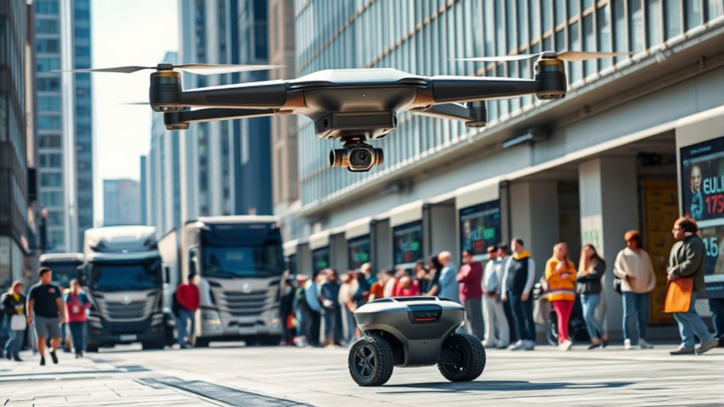 Predictive analytics plays a crucial role in autonomous deliveries by forecasting demand patterns, optimizing delivery routes, and anticipating potential disruptions. By analyzing historical data, traffic conditions, weather forecasts, and other variables, AI systems can determine the most efficient routes for autonomous vehicles or drones, ensuring faster deliveries and lower fuel consumption. This proactive approach lets you stay ahead of logistical challenges, minimize delays, and improve customer satisfaction. As these systems become more sophisticated, they learn from new data, constantly refining their predictions and route planning, which means your delivery network becomes more reliable over time.