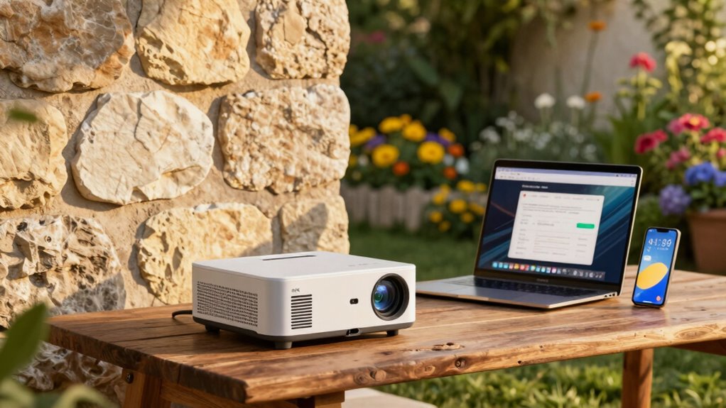 Think of your portable 4K projector as a brave explorer facing wild weather. Its durability factors, like sturdy construction and weather resistance, determine how well it withstands rain, heat, or dust. When equipped with robust seals and protective casings, it’s more resilient in diverse conditions. Still, you should always check its weather resistance ratings, ensuring it can handle your outdoor adventures without faltering.