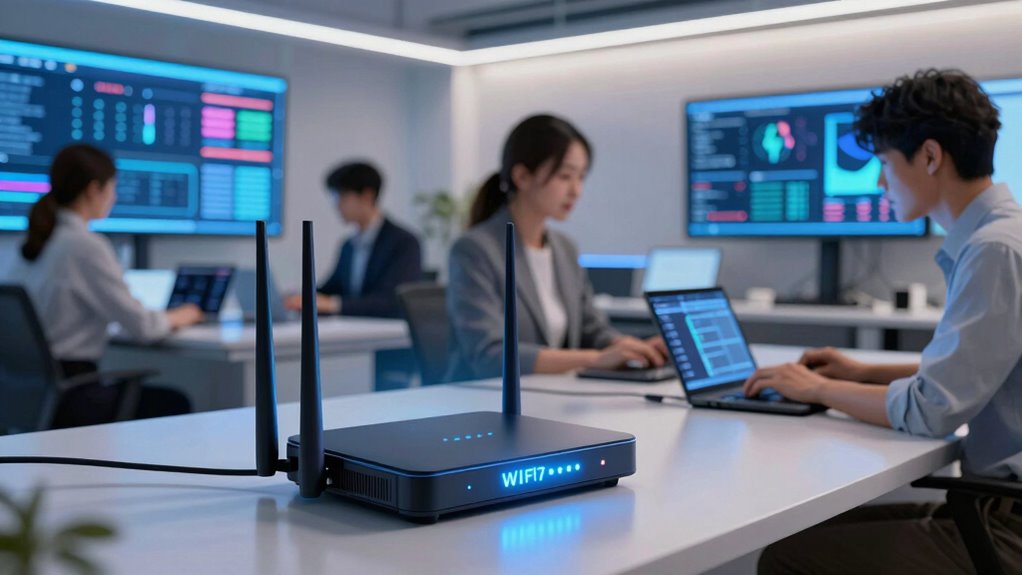 As smart offices become more advanced, upgrading to WiFi 7 routers is essential to meet the growing demand for faster, more reliable wireless connectivity. In high-demand environments, multiple devices—from laptops and smartphones to IoT sensors and smart appliances—connect simultaneously, putting pressure on your network’s bandwidth and stability. WiFi 7 delivers significantly increased speeds and lower latency, ensuring your team can work seamlessly without interruption. But speed isn’t the only factor; security is equally critical. Modern WiFi 7 routers prioritize wireless security, implementing advanced encryption standards to safeguard sensitive business data from cyber threats. You want a network that’s not just fast but also resilient against malicious attacks, and WiFi 7’s enhanced security features help you achieve that.