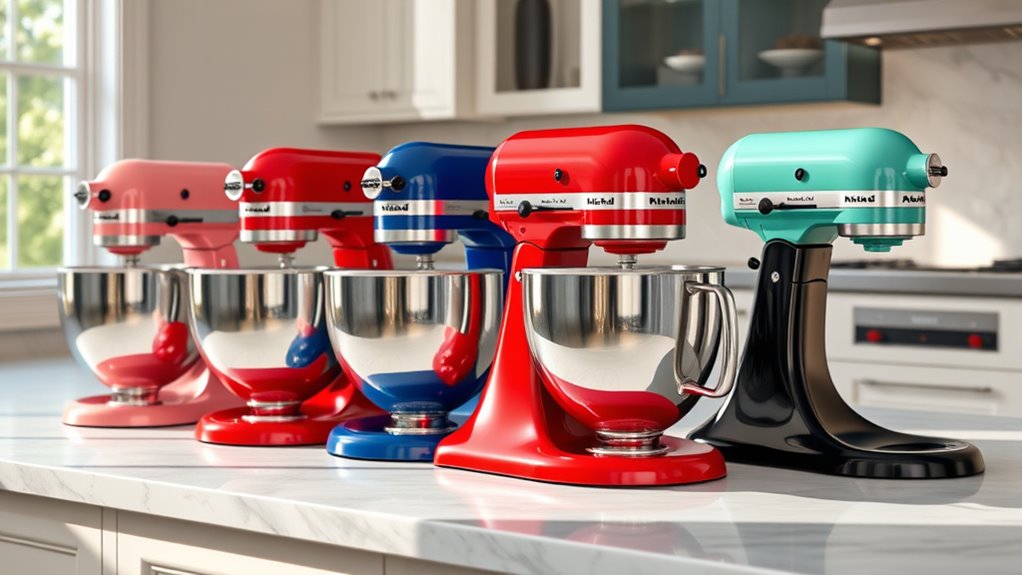 Choosing the perfect KitchenAid color is like finding a trusted friend who makes your kitchen feel uniquely yours. Imagine stepping into your space and feeling inspired every time you see that vibrant red or sleek matte black—it’s as if your mixer’s hue energizes your culinary adventures. Clearly, the right color isn’t just about style, but about creating a kitchen that reflects who you are and sparks your passion for cooking every day.