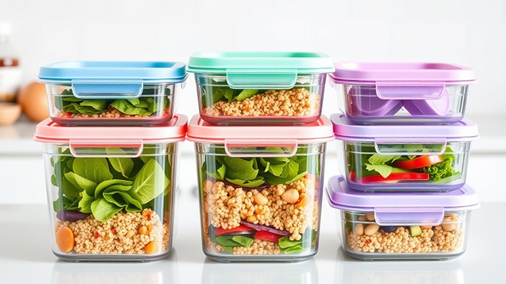 Have you ever struggled with limited kitchen storage? Glass meal prep containers are a game-changer because they’re designed to maximize space. Many are nestable or stackable, making it easy to organize your fridge and cabinets without clutter. Their uniform shape and size help create a tidy, efficient storage system. Plus, since they’re lightweight and durable, handling and storing them is simply less of a hassle. Space-saving lids that fit multiple containers reduce the need for extra storage space for lids, keeping everything compact. And the ability to safely transfer containers from freezer to microwave or oven means you don’t need separate storage solutions for different steps. Overall, glass containers help you save space while keeping your kitchen neat and functional.