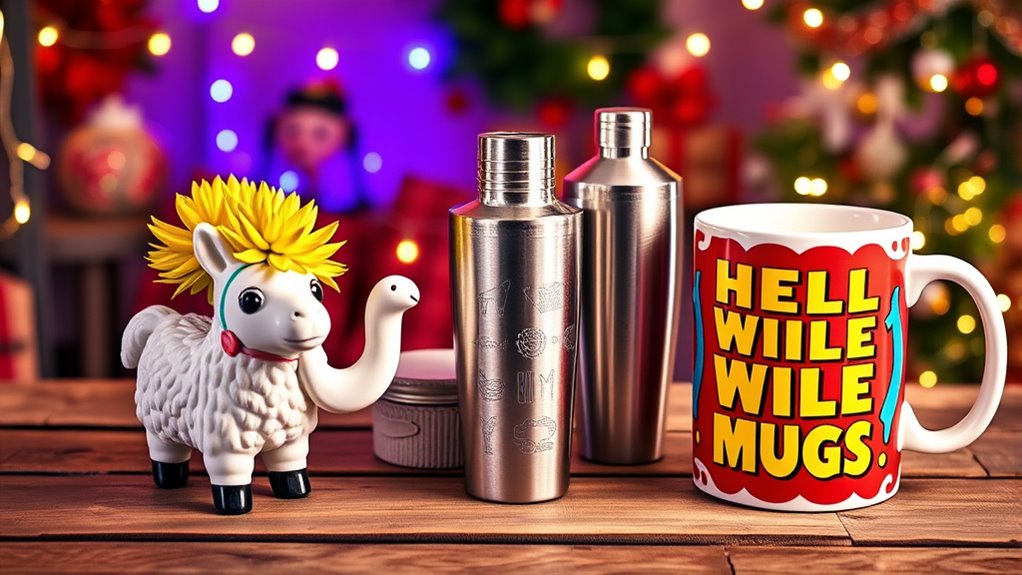 Humor and quirkiness can turn a standard White Elephant gift exchange into a memorable event. I’ve found that gifts with a playful or unexpected twist often spark laughter and surprise, making the experience more fun for everyone. These gifts tend to stand out and encourage conversation, especially when they tap into popular trends or inside jokes. Quirky items like gag toys or humorous household gadgets under $50 are perfect for breaking the ice and lightening the mood. They also help diffuse any awkward moments by shifting focus to fun and laughter. When choosing a humorous gift, I look for something that’s universally funny or at least relatable, ensuring it appeals to a wide range of participants and keeps the atmosphere lively and entertaining.